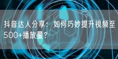 抖音达人分享:如何巧妙提升视频至500+播放量?