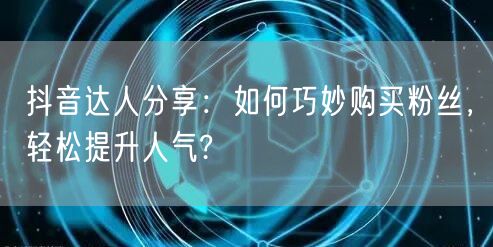 抖音达人分享:如何巧妙购买粉丝,轻松提升人气?